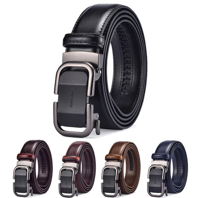 AeroSlide Men’s Leather Ratchet Belt – 3.5cm Adjustable Automatic Buckle Dress Belt