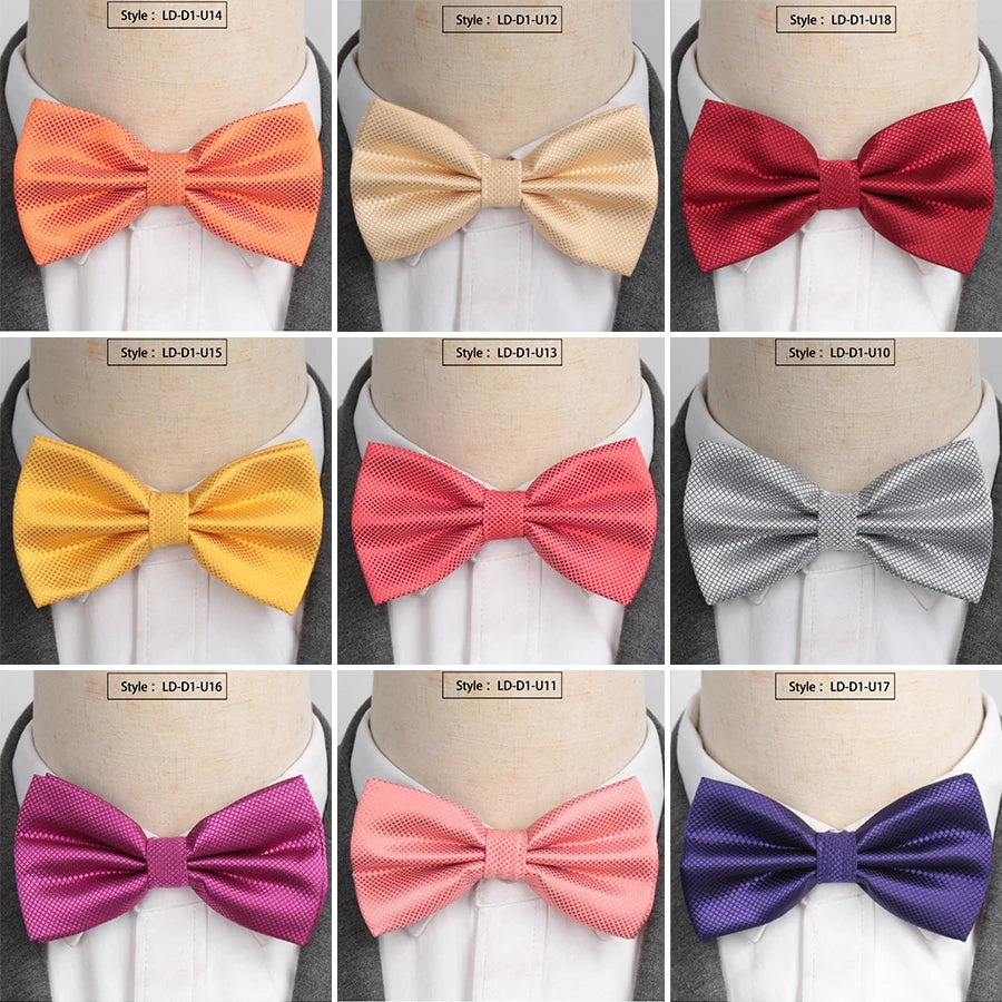 Add a touch of charm and elegance to any outfit with this classic solid color bow tie. Made from high-quality polyester, it features a smooth texture and crisp butterfly shape that instantly elevates both casual and formal looks. Whether for weddings, parties, performances, or daily wear, this versatile bow tie fits comfortably and stays neatly in place, giving a polished finish to any shirt or suit. Its unisex design makes it perfect for men, women, and even stylish kids.
