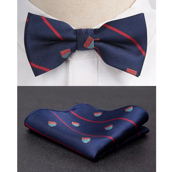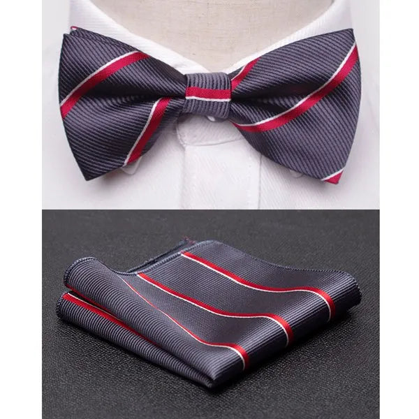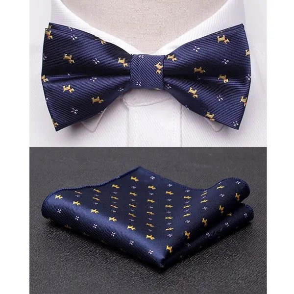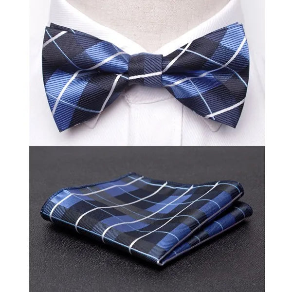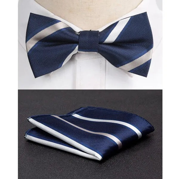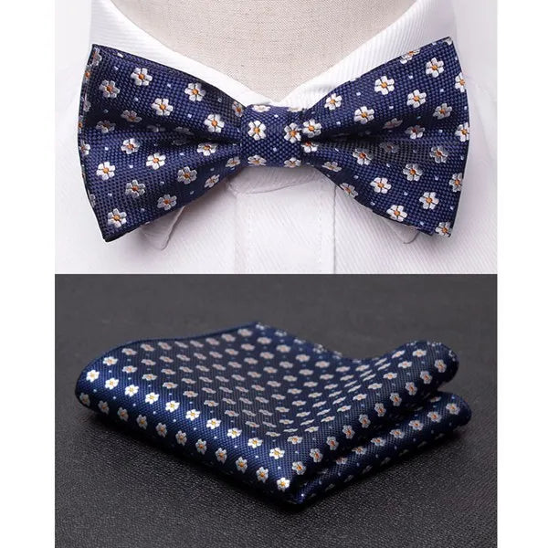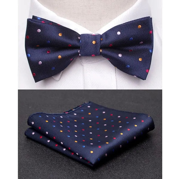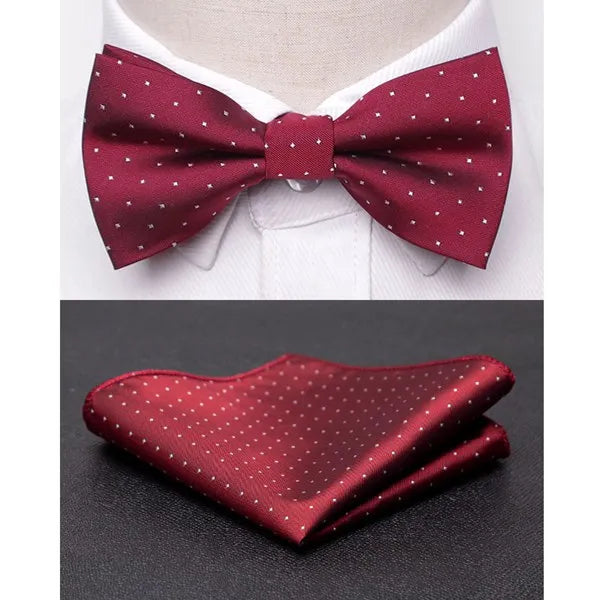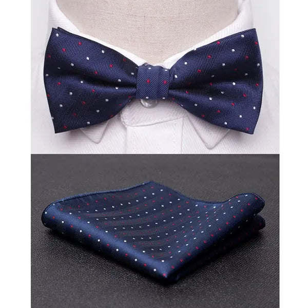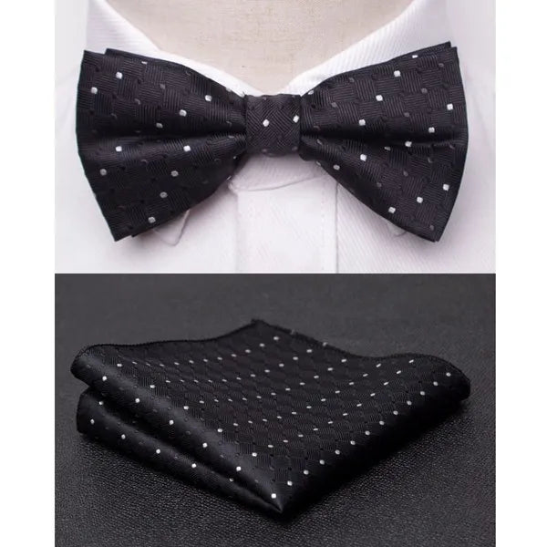 2-Piece Matching Set: Includes 1 bowtie and 1 cravat (handkerchief)