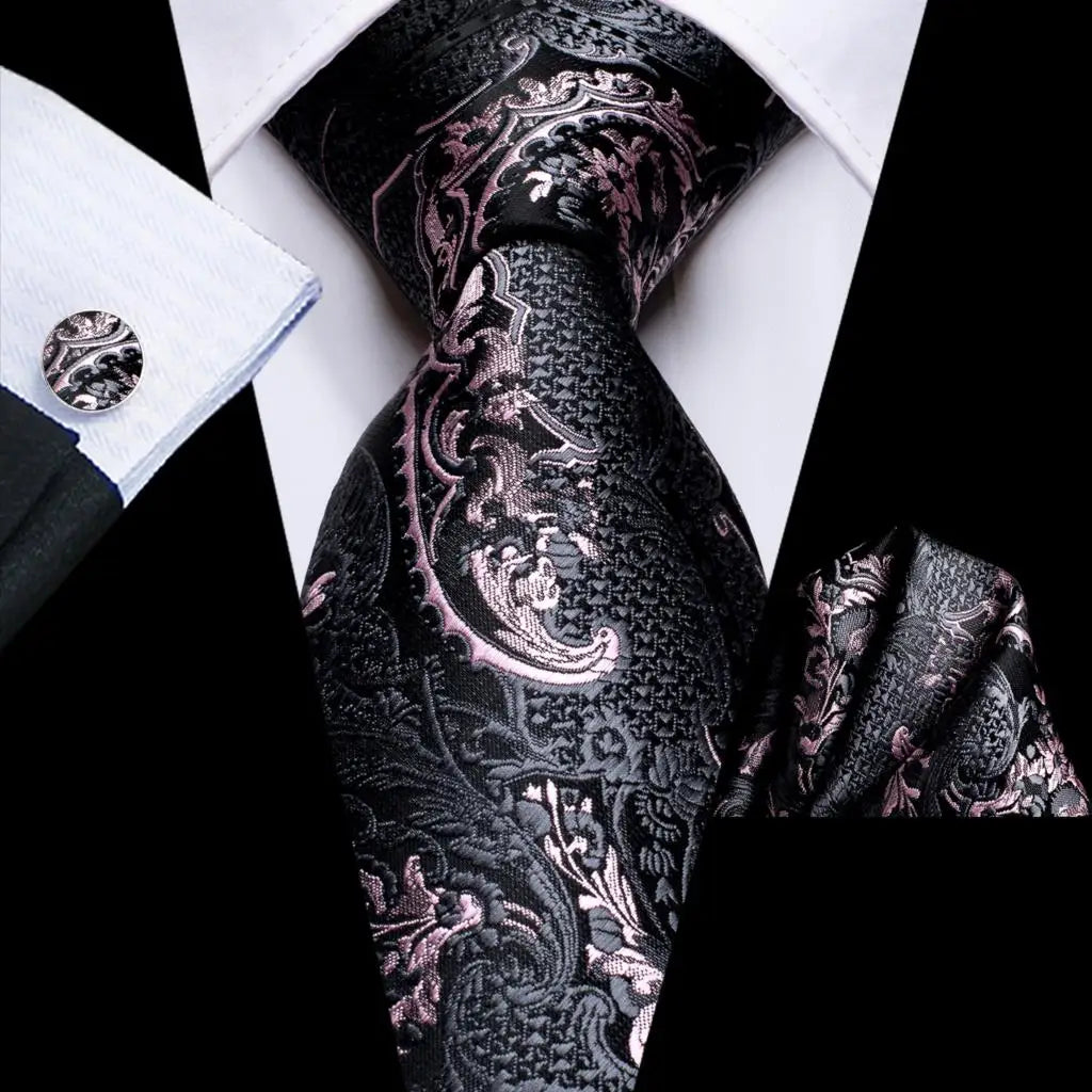 Elevate your formal wardrobe with the Midnight Luxe Dot Men’s Tie Set — a timeless combination of deep black tones and subtle woven dot detailing. Its rich texture delivers a refined, modern look perfect for business attire, weddings, and evening events. With coordinating accessories included, this set ensures a sleek, polished finish every time. Designed for versatility, it pairs effortlessly with any suit for a sophisticated and confident appearance.