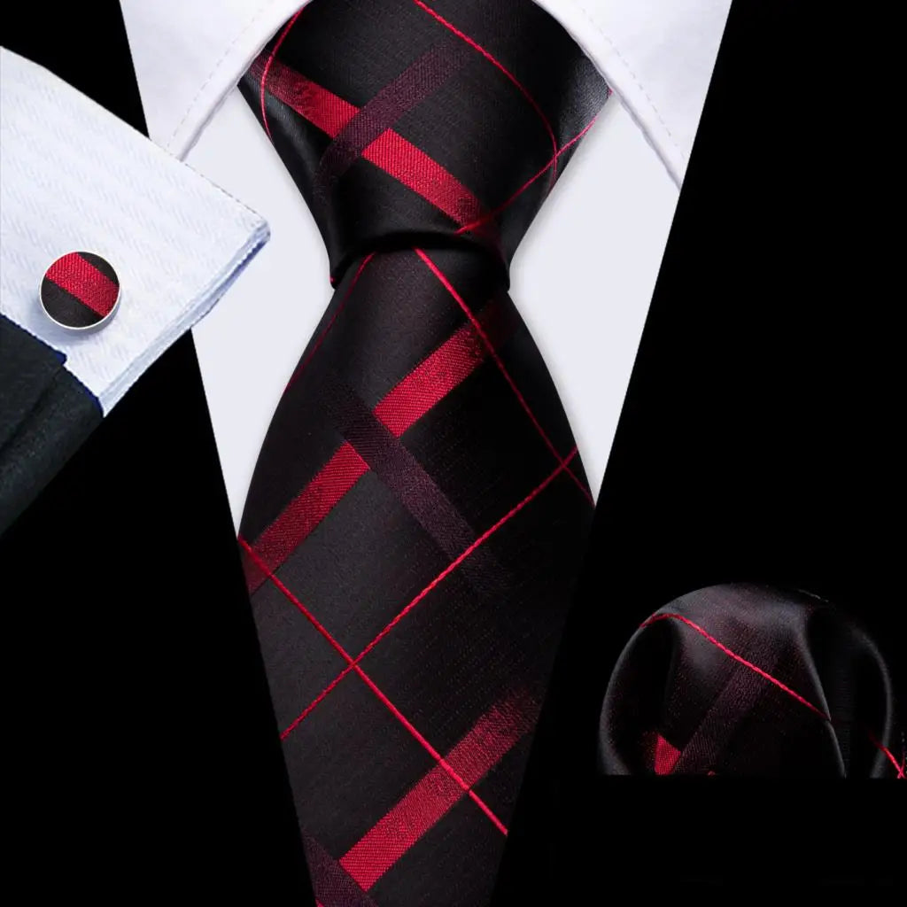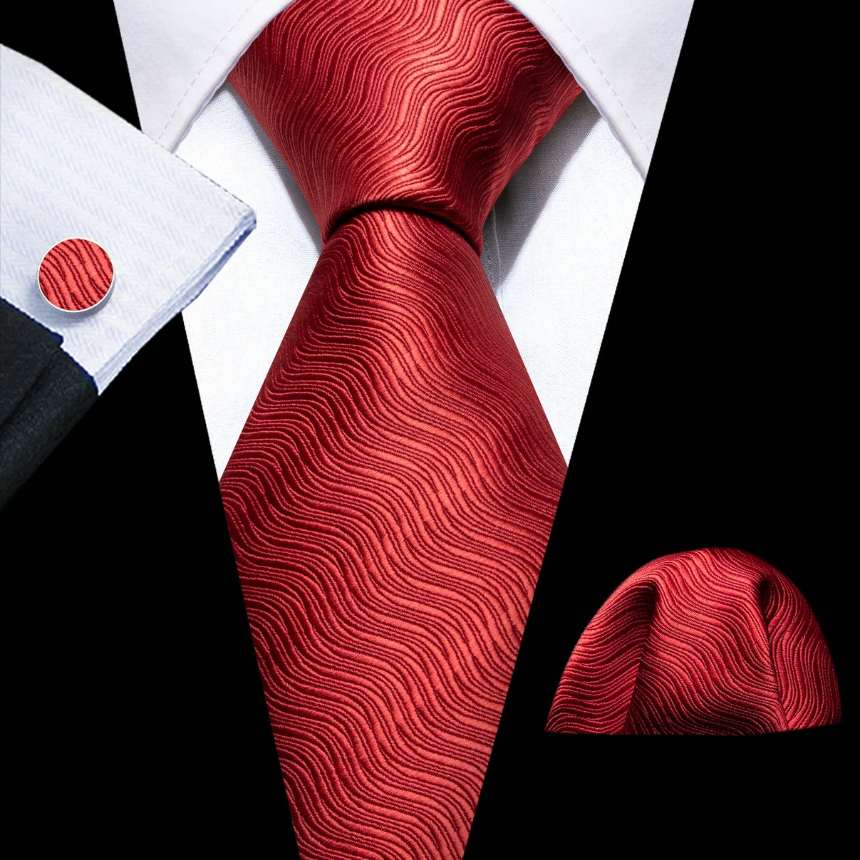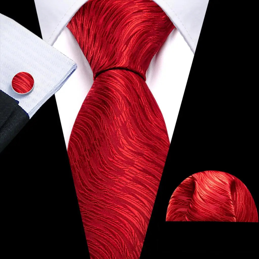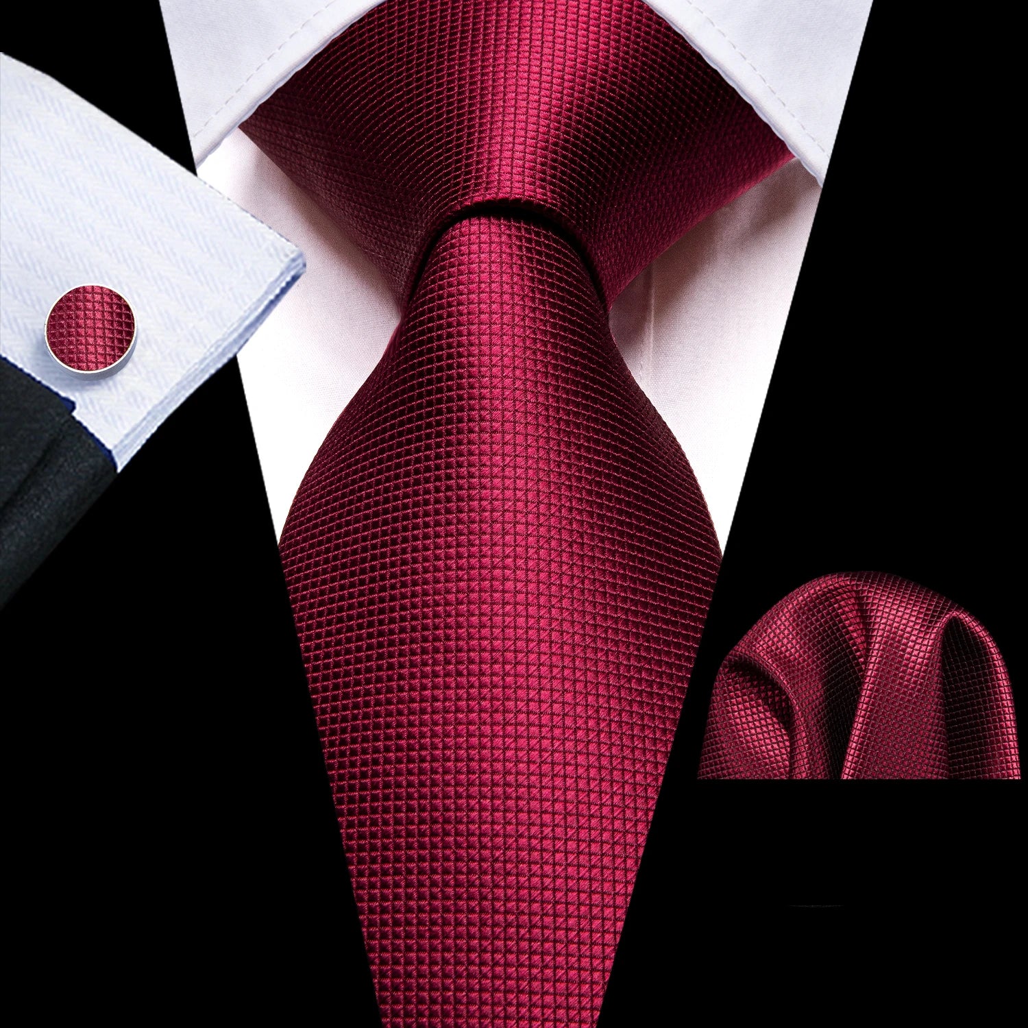 This set includes a silk-blend jacquard necktie, a matching pocket square, and coordinating cufflinks—perfectly crafted for weddings, formal occasions, or business attire. The rich tones of red, maroon, burgundy, and rose add a luxurious finish to your outfit, while the detailed floral pattern reflects the brand’s dedication to refined design.