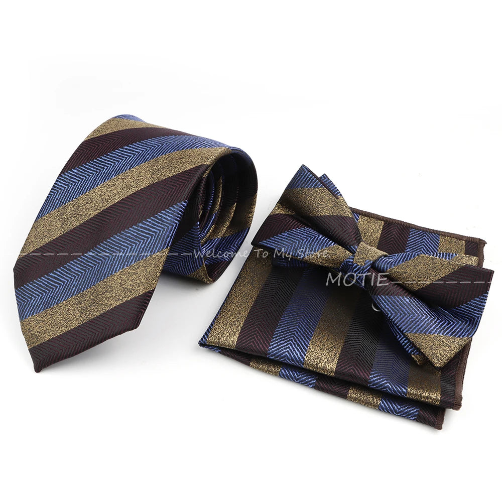 Refine your look with The Milan Collection, a sophisticated 3-piece set designed for timeless versatility and modern style. Featuring a premium necktie, a coordinating bowtie, and a matching pocket square, this ensemble is the perfect finishing touch for weddings, business events, or any formal occasion.