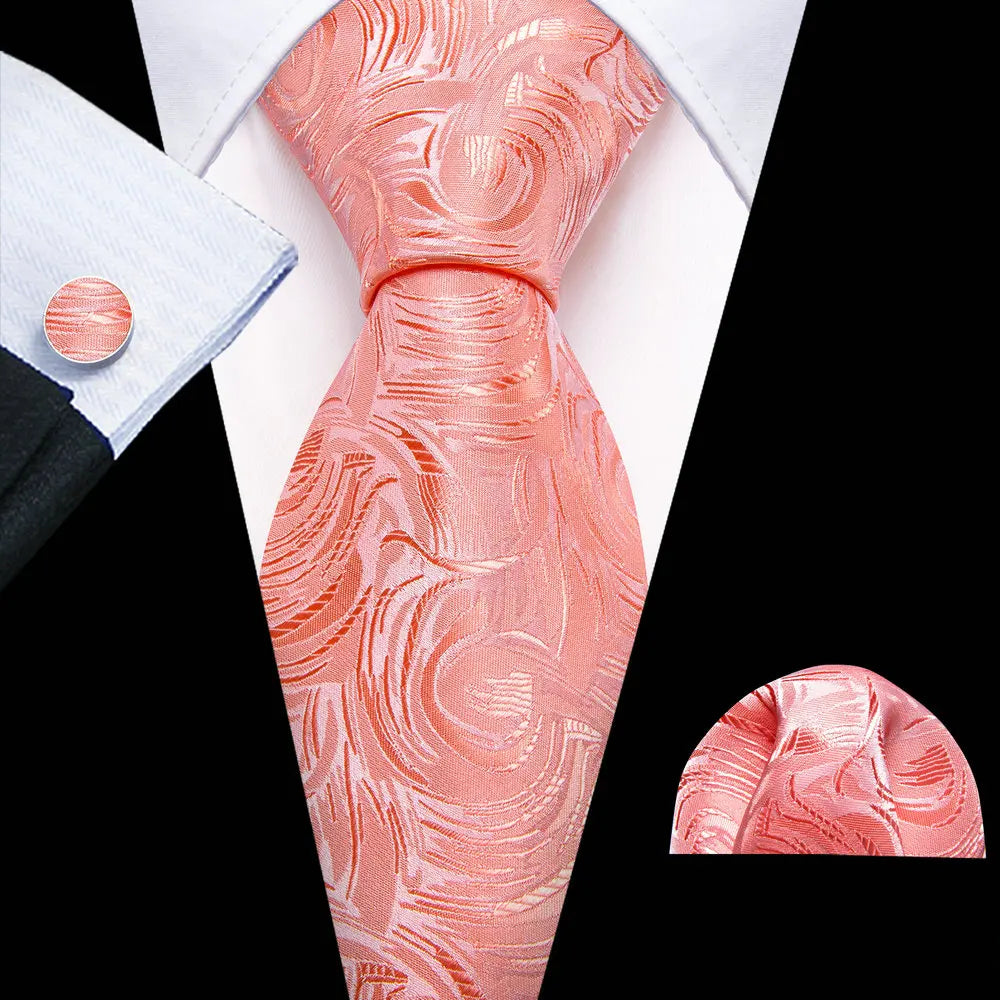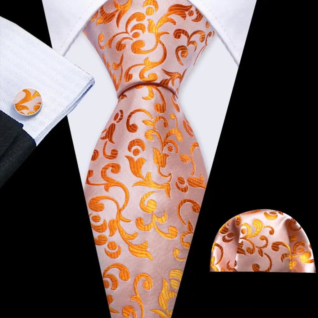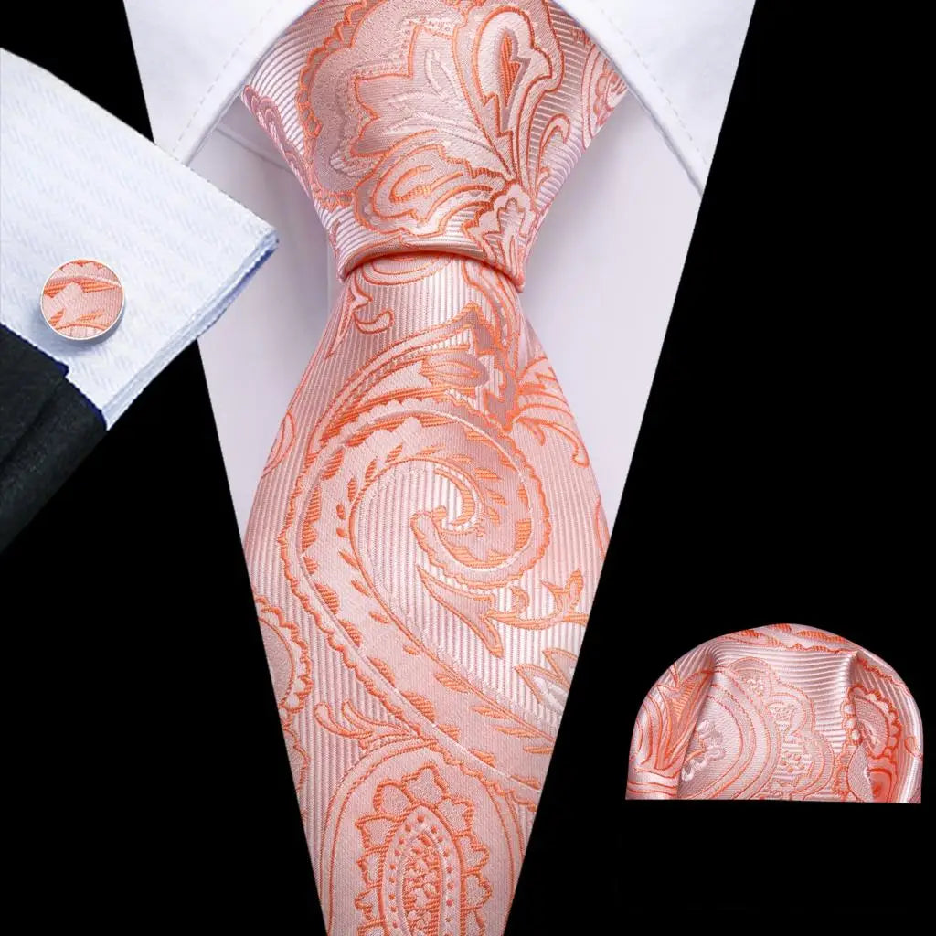 Featuring warm tones of orange, pink, salmon, purple, and gold, this tie set radiates confidence and sophistication — perfect for weddings, business events, and formal occasions. The luxurious jacquard texture reflects light beautifully, giving your outfit depth and dimension.