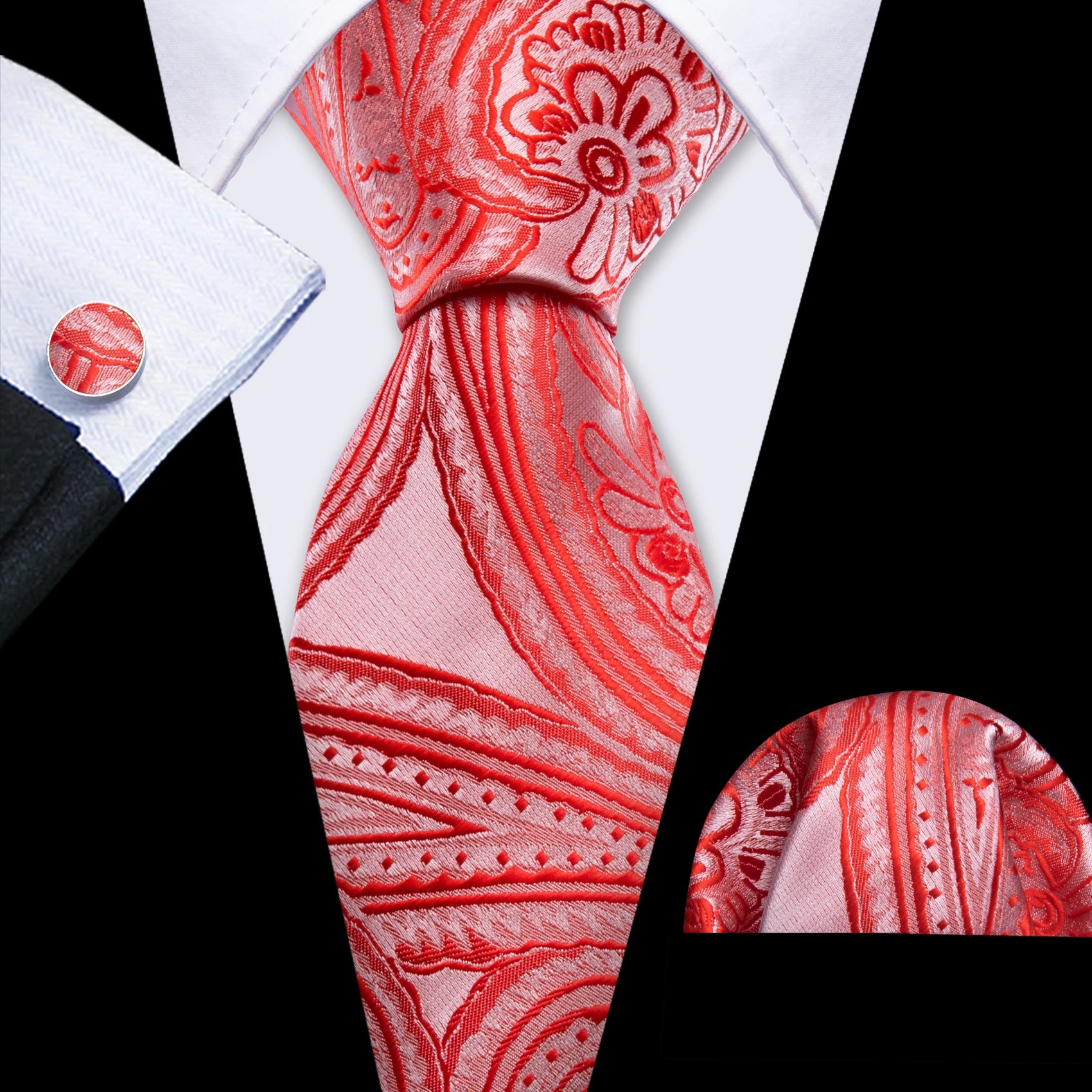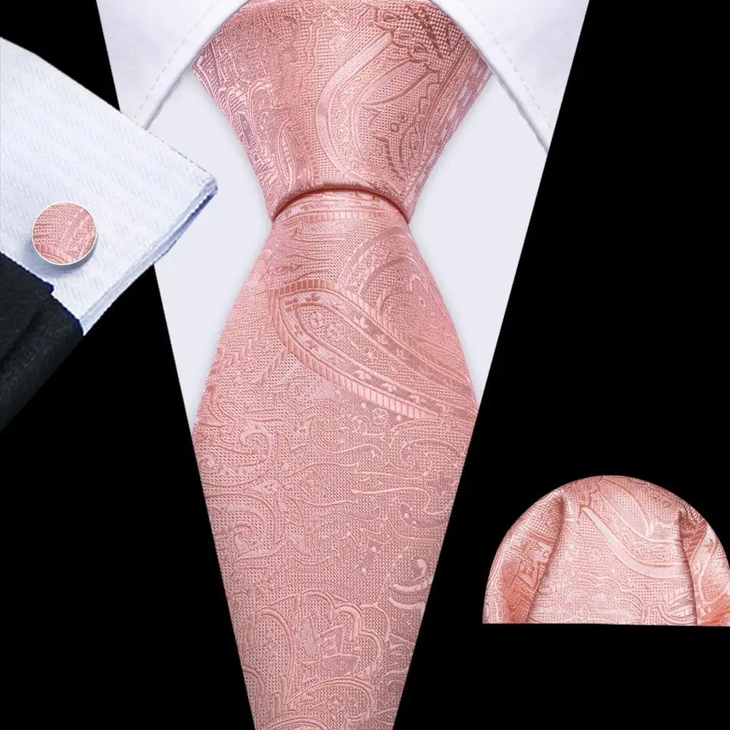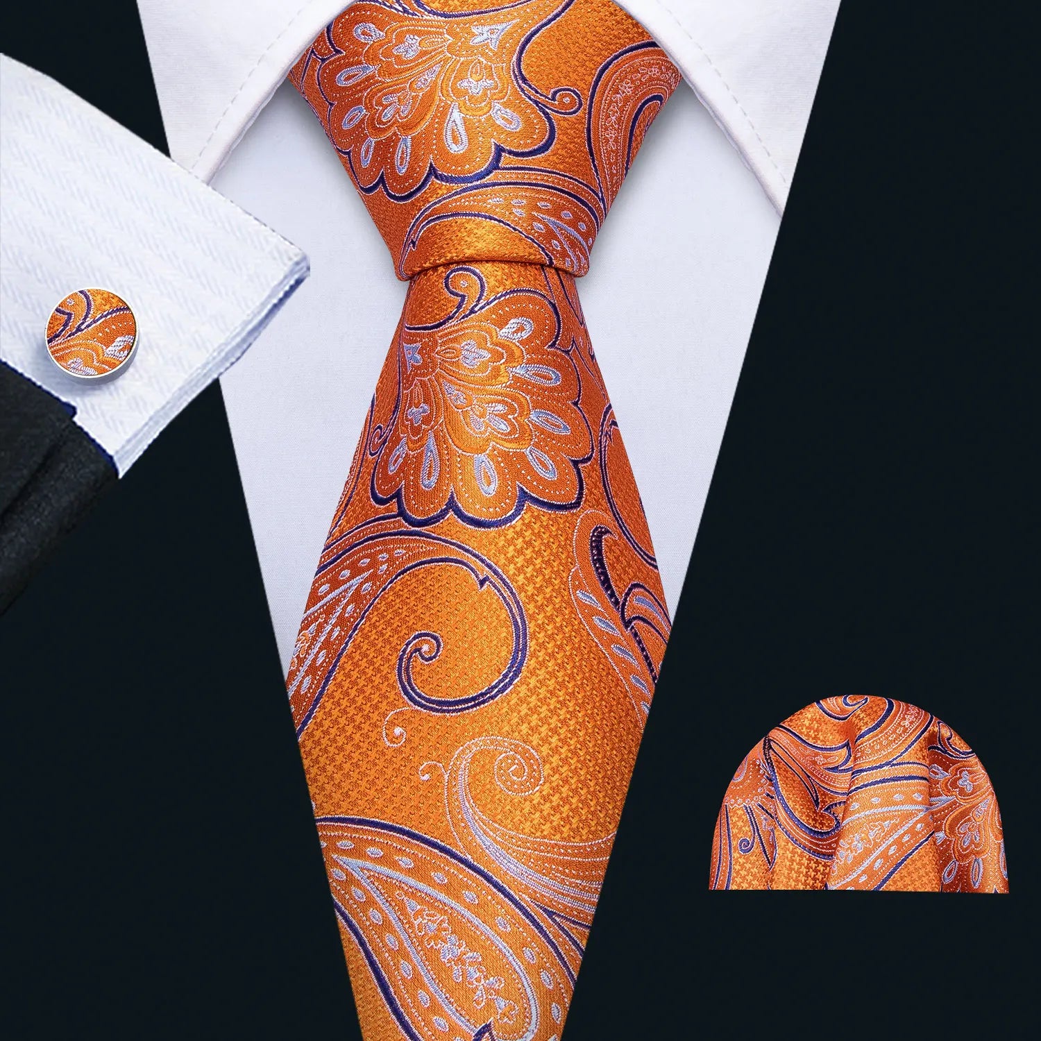 Featuring warm tones of orange, pink, salmon, purple, and gold, this tie set radiates confidence and sophistication — perfect for weddings, business events, and formal occasions. The luxurious jacquard texture reflects light beautifully, giving your outfit depth and dimension.