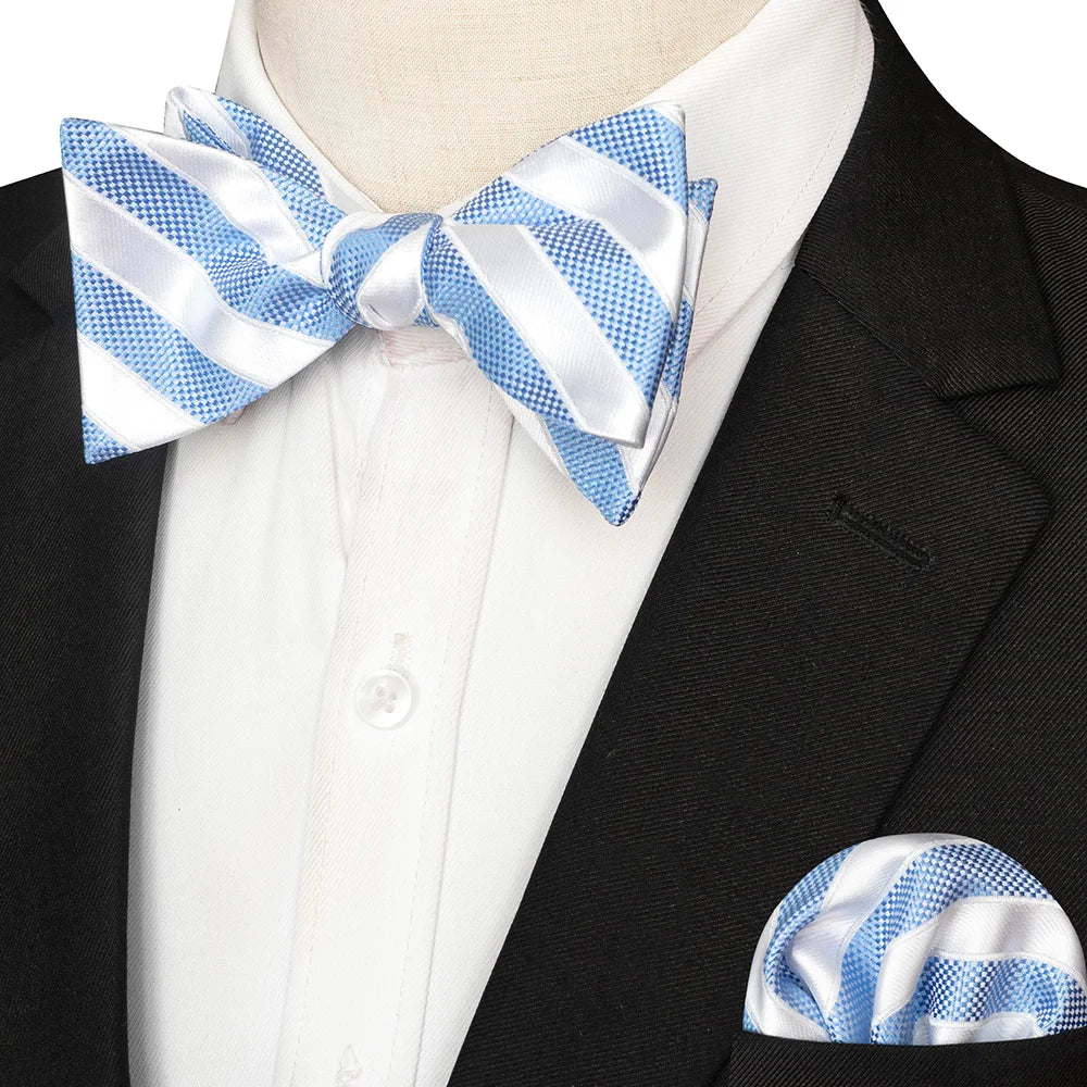 Elevate your formal wardrobe with this sophisticated EASTEPIC striped silk bow tie and hanky set. Crafted from premium silk, it offers a smooth texture and elegant sheen that perfectly complements both classic and contemporary styles. The refined geometric and paisley patterns add depth and character, making it an ideal accessory for weddings, evening parties, business meetings, or special celebrations. Available in timeless colors like blue, green, red, and yellow, this set enhances any suit or tuxedo with effortless class.