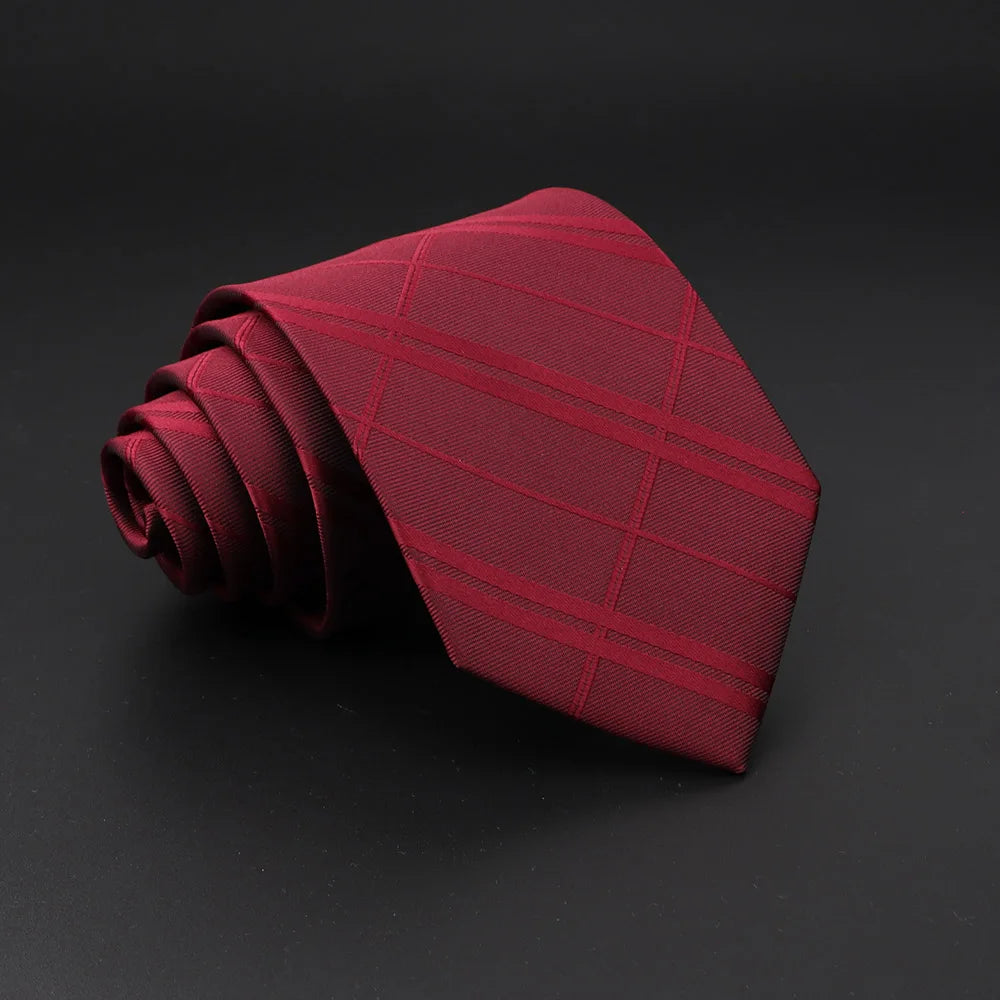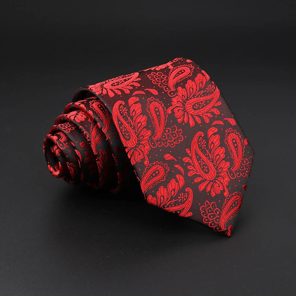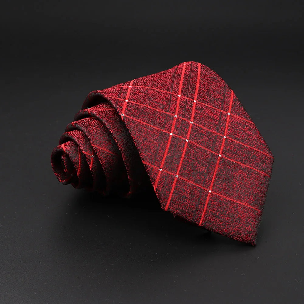 A symbol of distinction, The Marquis Heritage Tie brings together timeless motifs — paisley, floral, plaid, and stripe — in a rich palette of red, green, and classic tones. Designed for the gentleman who values tradition with a contemporary edge, this tie offers depth, texture, and sophistication in every fold. With its versatile 8 cm width and graceful 145 cm length, it enhances both professional and celebratory attire, whether paired with a tailored suit for business or a formal ensemble for weddings and events.